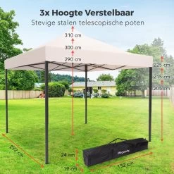 LifeGoods Partytent – 3×3 M – Easy Up – Opvouwbaar – Waterdicht – Draagtas Met Wieltjes – Beige
