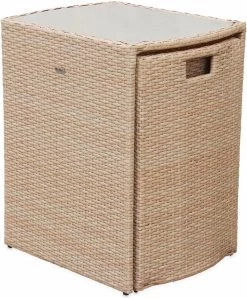 Wicker is een stevige en weerbestendige kunststof. Het is zowel tegen zonnestralen (UV) als tegen slechte weersomstandigheden (regen / sneeuw / zout water) bestand.