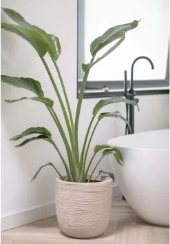 De Rib-textuur geeft deze pot een natuurlijke look. Deze textuur is geïnspireerd op gevlochten riet en de dunne lijnen daarvan. De smalle, dansende lijnen zorgen naast een natuurlijke look ook voor een speelse touch aan deze potten.