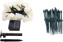 De slinger wordt geleverd met 20 x led in de paddenstoelen die volledig zijn op te laden met zonne energie. Uiteraard wordt de zonnepaneel ook meegeleverd met jouw bestelling.