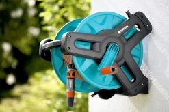 De slangenhouder geeft steun waar dat nodig is. Hij dient om de slang veilig op te bergen aan de muur, maar hij kan ook worden losgenomen voor mobiel gebruik in de tuin.
