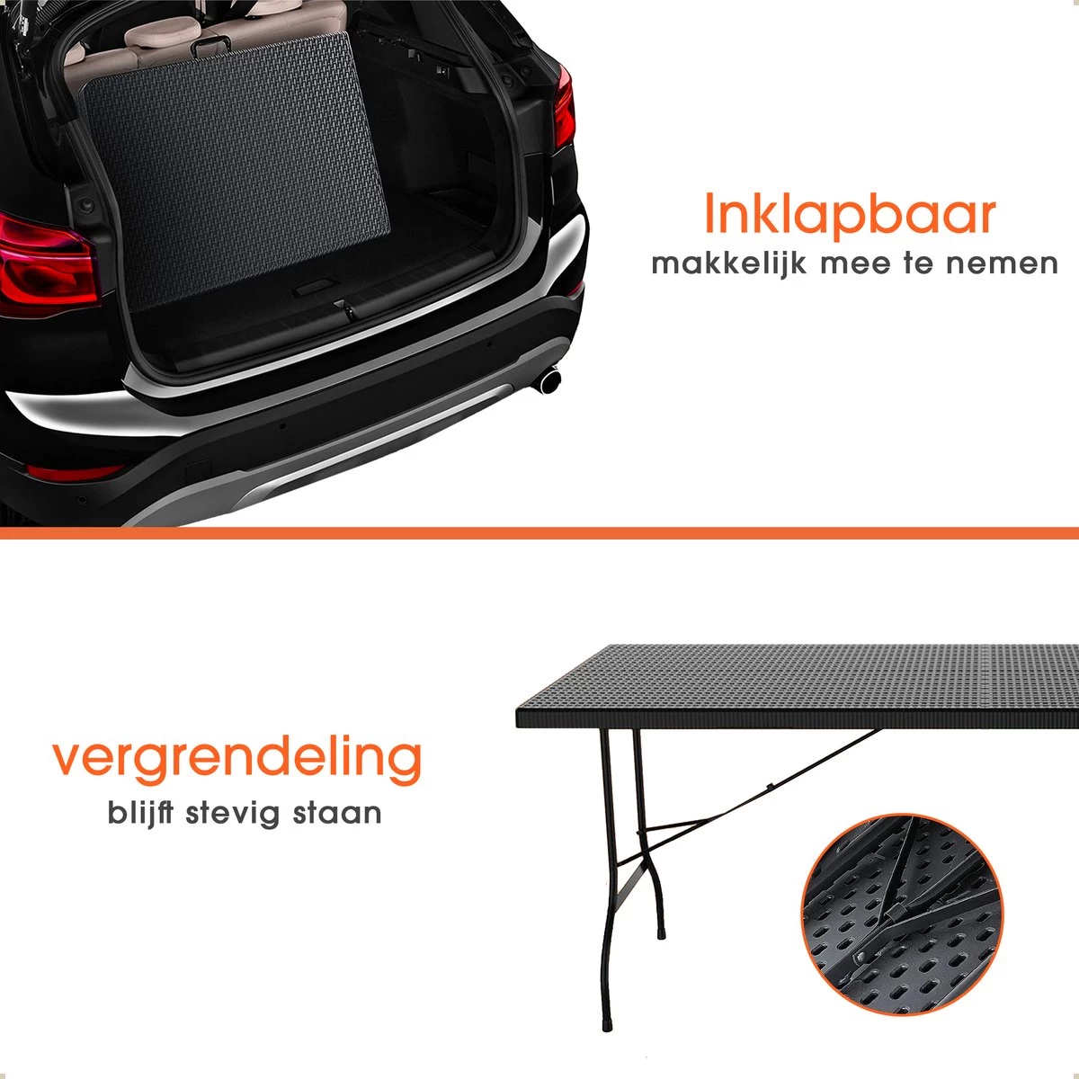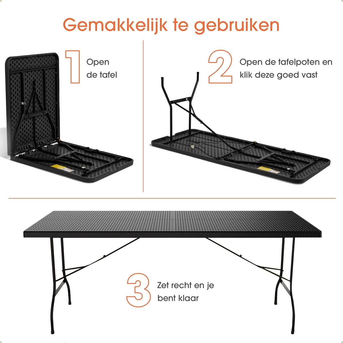 De campingtafel is eenvoudig in gebruik, snel in- en uit te klappen en dus snel beschikbaar voor uw gasten of voor uzelf. Bovendien, door het stevige handvat is het verplaatsen van de tafel erg gemakkelijk, waardoor u nooit meer gedoe heeft met opbergen en tevoorschijn halen.