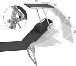 De zon schijnt sterk en het felle licht doet pijn aan je ogen? Maak je geen zorgen. Deze ligstoel heeft een zonneklep die eenvoudig kan worden aangepast. Maak een selfie en laat anderen jaloers worden!
