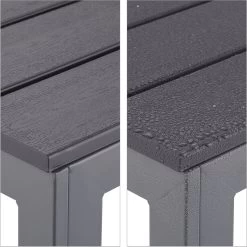 Als je ook met volle teugen van het tuinseizoen wilt genieten, ben je met deze tuintafel aan het juiste adres. Aan de vierkante buitentafel kunnen tot 4 personen gezellig samenzitten, eten of een kopje koffie drinken. De eettafel staat met zijn moderne look ook heel mooi op het balkon of op het terras. De grijze look van hout is een prachtige blikvanger en is goed te combineren. Aangezien de balkontafel gemaakt is van onderhoudsvriendelijk kunststof en robuust staal, gaat hij lang mee.