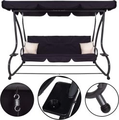 De luifel van de schommelbank is net als de rest van het materiaal waterdicht zodat je beschermt bent tegen de regen. Bovendien is de luifel af te stellen, zodat het ook tegen de zon bescherming biedt. Het stalen frame is bedekt met een coating die roesten tegengaat, zodat je jarenlang kunt genieten van de schommelbank. Verder zorgen details als antislippoten, stevige veren en een mooi design ervoor dat niks in de weg staat om optimaal te genieten!